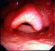 2、轻者自觉有异物塞于烟部。若病情发展快可能出现呼吸困难,以吸入性呼吸困难为主,伴有高音调吸气性喘鸣及鼾响,发音含混,可迅速引起窒息。