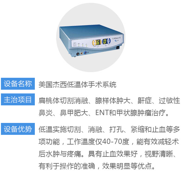 郑州民生耳鼻喉医院借助于美国“美敦力”耳鼻喉动力系统的负压吸附功能,将肥大的增殖体吸离后,再用美国杰西低温消融术进行切除,对患儿的术中损伤小,恢复快。