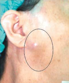 腮腺肿瘤的治疗及注意事项。腮腺肿瘤是发生在口腔的良性肿瘤。主要因腺管阻塞至分泌物滞留,使其膨胀而形成的囊肿。腮腺处可扪及质软痛感小性囊块,触之波动,穿刺可抽出物色透明液体。可手术切除。疾病简介系发生于腮腺的潴留性囊肿、腮裂囊肿和皮样囊肿。