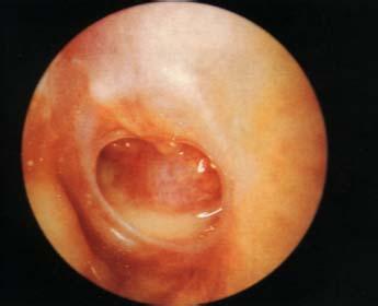 4、消散期:感染4~5天后,鼓膜中心黄变坏死,后穿破流脓。初为浆液,后为粘脓和纯脓。穿孔由中央小孔变成肾形大穿孔。一旦穿破流脓,除耳鸣、耳聋外,一切症状顿然消失,体温恢复正常,小儿可以吃乳入睡,成人可得正常工作。
