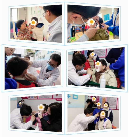 义诊现场,刘红勇主任运用电耳镜、音叉等专业工具,逐一为孩子们及康复中心的老师进行耳鼻喉健康检查,并针对个体情况提供个性化健康指导,帮助他们更好地保护听力。