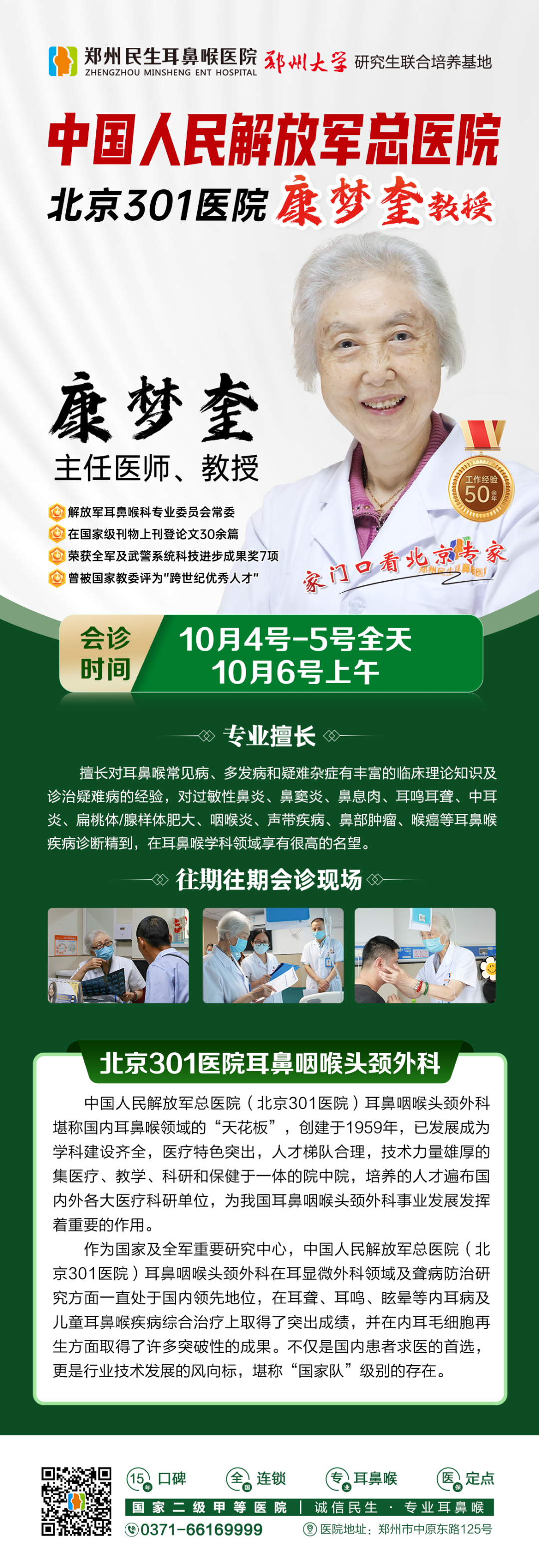温馨提醒:10月6日(周一)上午是康教授此次郑州会诊最后1天,名额有限,有需要的患者请抓紧时间预约到院。