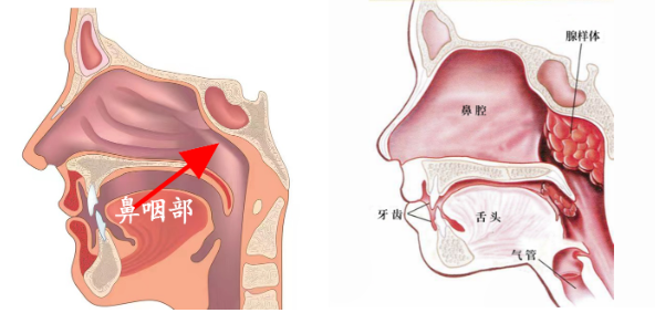 腺样体是一种类似于扁桃体的淋巴组织,也被称为咽扁桃体,它位于鼻腔最后部、口腔上方一个称之为鼻咽部的地方,外形像半个橘子。腺样体出生后即存在,6-7岁时增生最明显,10岁以后逐渐萎缩。