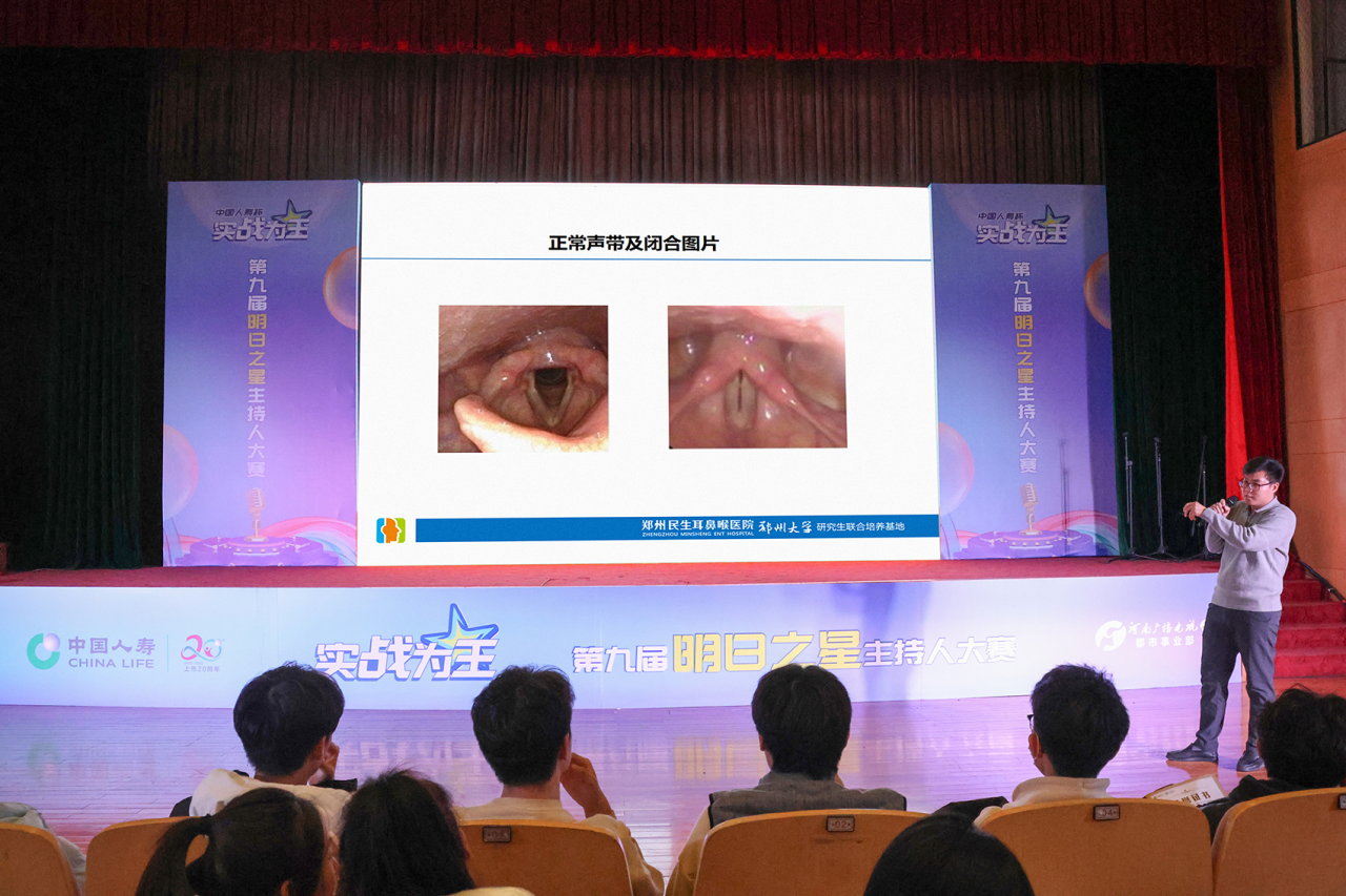 11月26日下午,河南广播电视台“明日之星”主持人大赛决赛在即,郑州民生耳鼻喉医院鼻咽喉病区刘红勇主任应邀为参赛选手开展专题讲座,就如何保护嗓音进行科普分享。