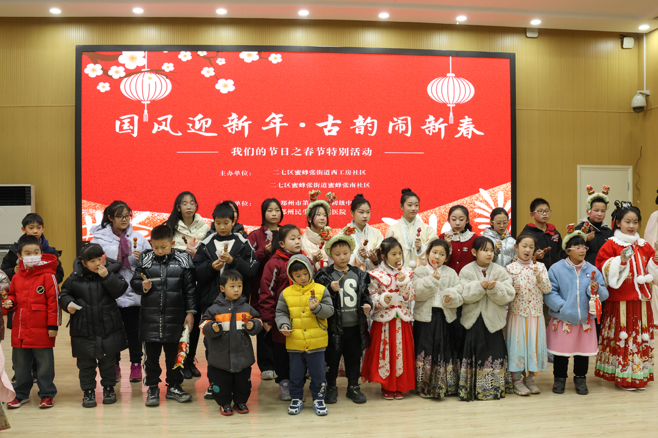 随着龙年春节的临近,郑州市二七区蜜蜂张街道西工房社区、蜜南社区联合郑州市一〇六中学开展我们的节日·春节“国风迎新年·古韵闹新春”主题庆新年迎新春活动。以国风古韵与春节民俗双主题融合为辖区居民群众奉上一场家门口的文化视觉盛宴。郑州民生耳鼻喉医院作为社区共建单位,荣幸受邀参会。