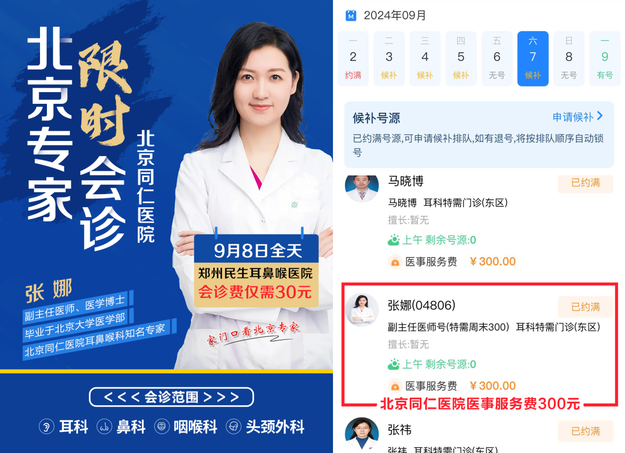 提前约可省270元挂号费!北京同仁医院耳鼻喉科知名专家张娜主任9月8日亲临我院会诊!