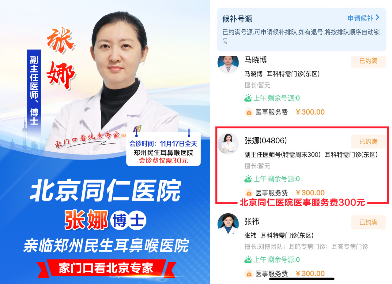 提前约可省270元挂号费!北京同仁医院知名专家张娜主任11月17日亲临我院会诊!