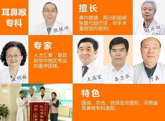 我院致力于改善中原地区耳鼻喉医疗水平,坚持奉行中美合作的发展方向和管理理念,引进各种新型耳鼻喉疾病治疗的现代化智能设备和技术,使患者得到规范、有效、科学的诊疗,本着"关注民生、服务百姓"的使命,为患者搭建了一个代表耳鼻喉疾病优秀诊疗水平的珍贵平台,使我院始终在全国同行业医疗机构中保持好的状态。
