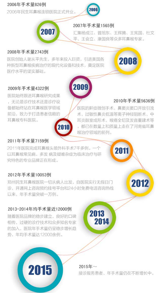经过多年的努力,郑州民生耳鼻喉医院已成为河南省乃至整个中原地区较具规模的耳鼻喉医院,是河南省乃至整个中原地区的耳鼻喉医院。民生连锁医院耳鼻喉手术量六年来共完成近二万例,耳鼻喉连锁筹建上市企业!