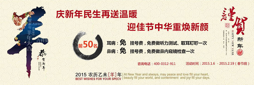 辞旧迎新,欢庆佳节,郑州民生耳鼻喉医院为让广大患者摆脱疾病困扰,欢度新春佳节,特推出“同庆迎春”活动。自2015年1月6日起至2015年2月19日(农历春节),凡通过网络和电话预约,到院的患者均可享受以下优惠: