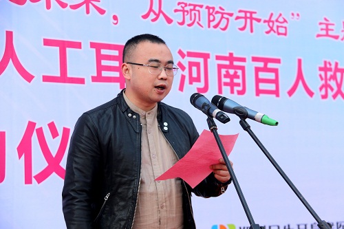 中国听力医学发展基金会副主任廖沙夫首先对爱心企业及医务工作这表示感谢,并对介绍了活动的意思,他表示:“牵手行动·听力重建——人工耳蜗河南百人救助计划,旨在传递社会各界的善行大爱,让那些急需救援之手、家境贫困的聋人及其家庭,感受人间的至善和温暖,帮助他们恢复听力,重返有声世界。‘牵手行动’首期目标将为100名重度听障者,援助植入人工耳蜗。”